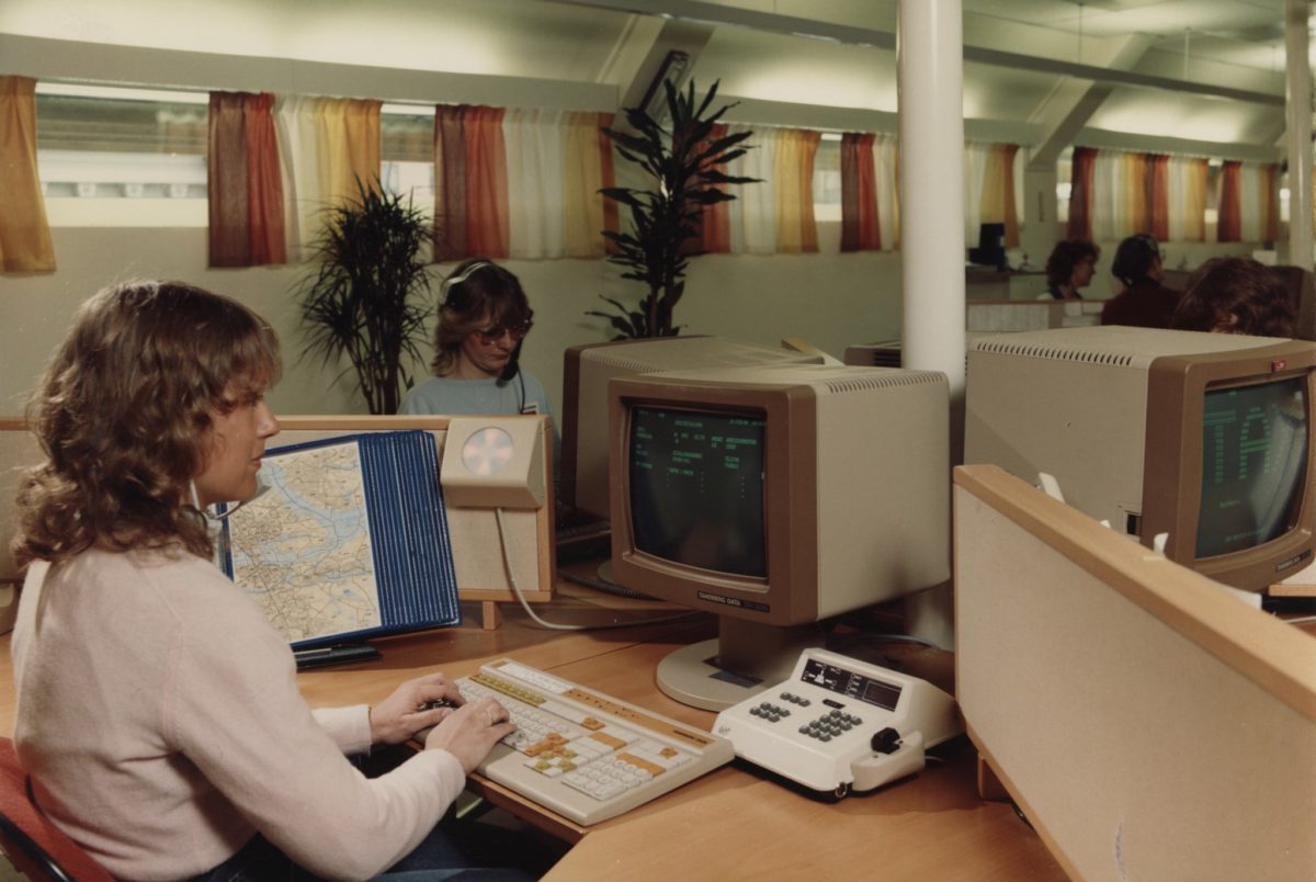 [caption id="" align="alignnone" width="870"] Under 1980-talet datoriserades taxibolagens växlar. Bild ur Ericssons historiska arkiv hos Centrum för Näringslivshistoria.[/caption]