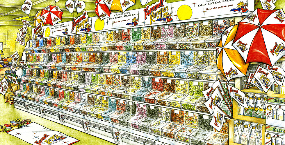 Livsmedelsverket konstaterade 1985 att självplock av godis var tillåtet – men bara om produkterna var hygieniskt placerade, att konfektyren låg i separata behållare och bara fick plockas med en slev eller skopa. Nu fick godisförsäljningen ett snabbt uppsving.