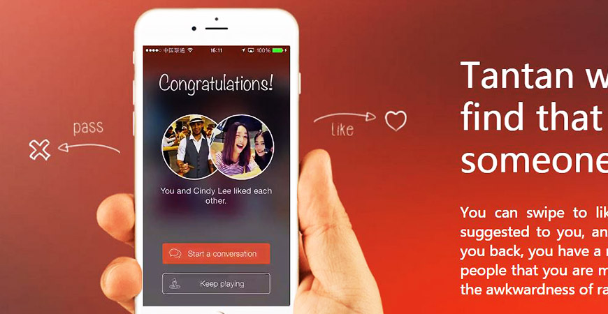 Dejtingappen Tantan är idag en av Kinas snabbast växande appar som år 2015 fick in 110 miljoner svenska kronor i riskkapital. Bakom idén står ett svensk-kinesiskt kärlekspar Yu Wang och Sophia Pan.